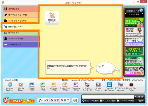 dynabookをお使いのお客様のための活用応援サイトにアクセスします。