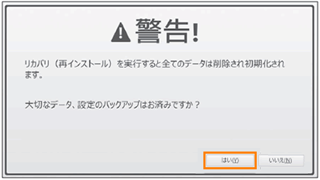 リカバリーには時間がかかりますので、時間の余裕をもって行なってください。