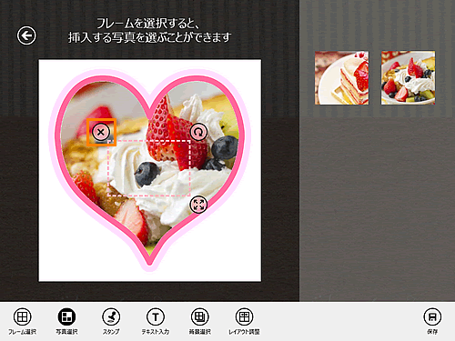 - フレームに写真が挿入されます。挿入された写真は編集することができます。