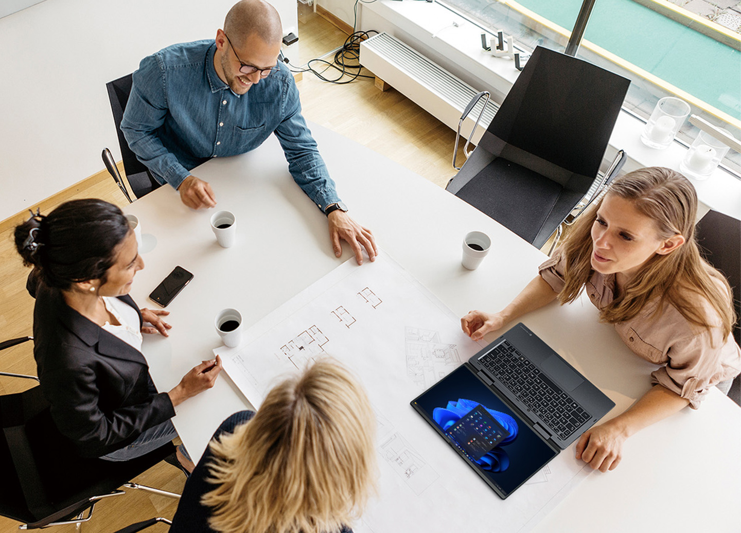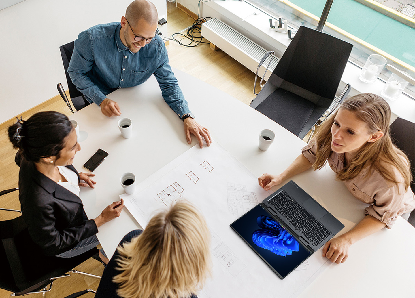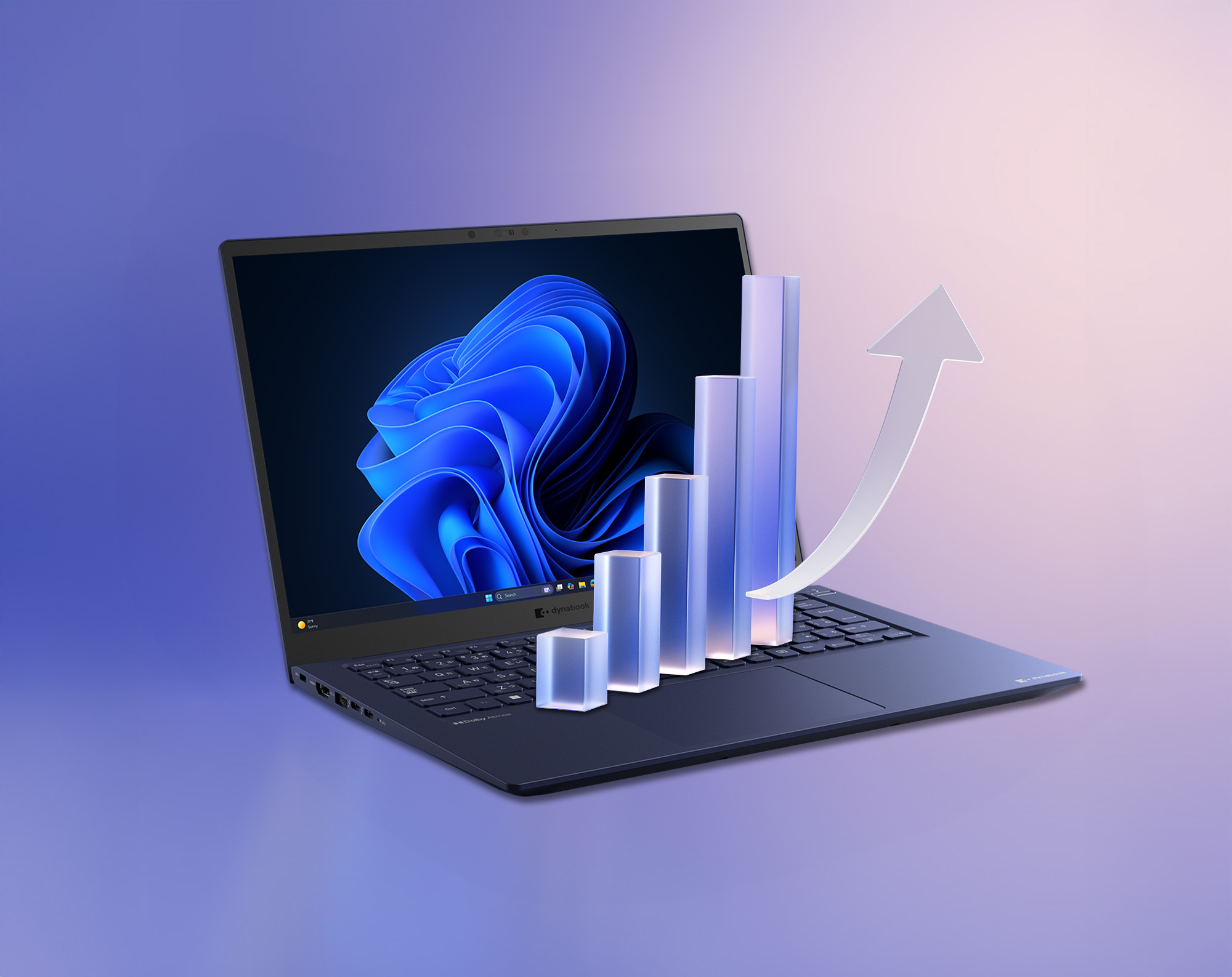 仕事のスピードが、ビジネスの成果を高めます。新しいPCにアップグレードすれば、1日中持続するバッテリー*5と強力なパフォーマンスにより、負荷の高いワークロードが平均で42%速く完了できます。*3