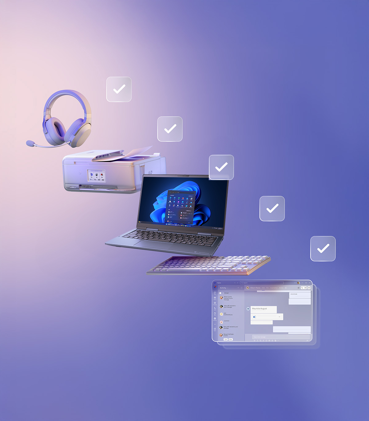 旧式のデバイスでは、作業速度が低下する可能性があります。新しいPCにアップグレードすることで、ワークフローが平均50%高速化。*3強化されたスナップレイアウト、より優れたビデオ会議、Microsoft 365 Copilotなどのスマートな時間節約機能を活用しましょう。*4