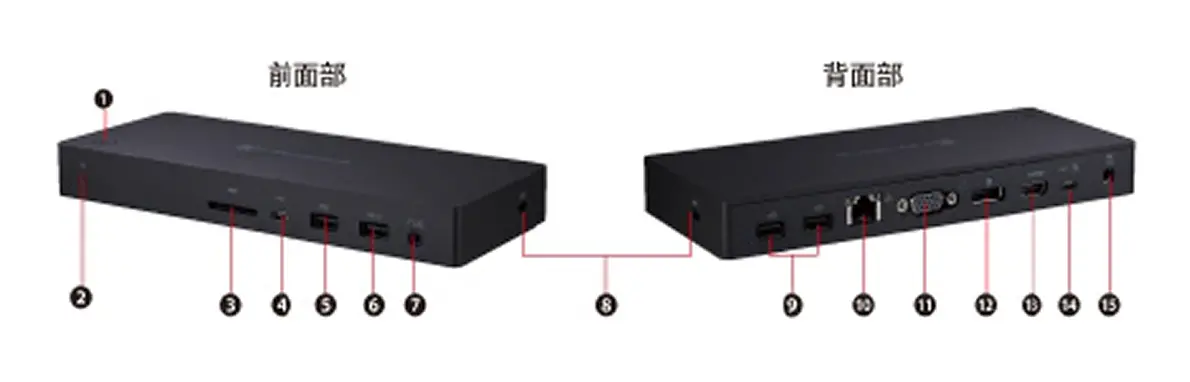 最⼤5Gbps*2の⾼速データ転送や、電源供給、外部ディスプレイ出⼒に対応。多彩な周辺機器、電源、有線LANに加えSDカードも、1本のケーブルで簡単接続可能です。
