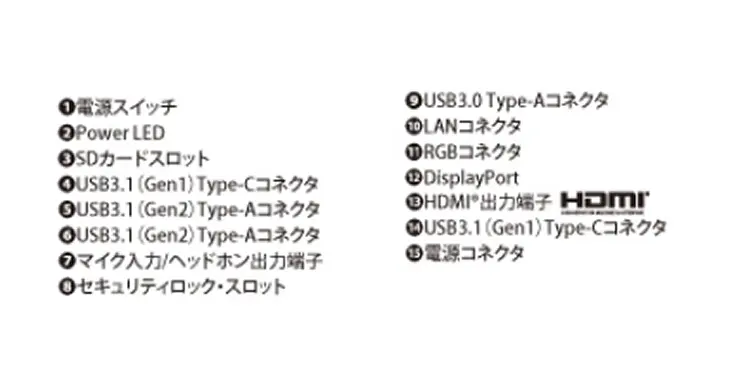 ※表⽰装置はPCを含めて3画⾯まで拡張表⽰が可能です。また、各コネクタの詳細については、取扱説明書(マニュアル)をご覧ください。