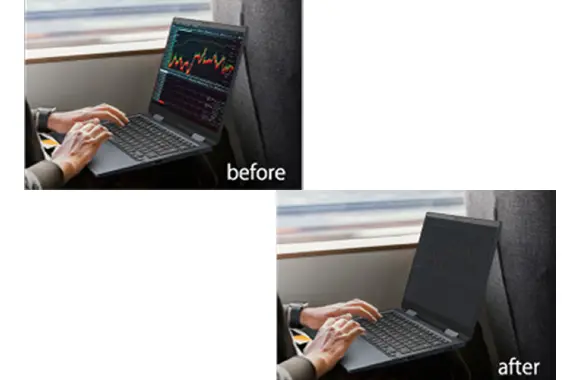視野角を60度に狭めたフィルターを装着することで横からののぞき見を防止できます。映り込みが少ないノングレアフィルムです。