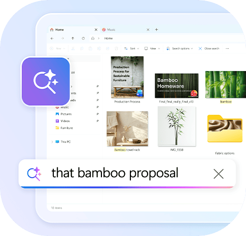 ファイル名やキーワードを覚える必要はありません。必要なものを説明するだけで、PCが自動的に探してくれます。*5